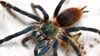 und ein grün blaues Carapax(Vorderkörper), sowie ein dunkles Abdomen(Hinterleib) mit roten Brennhaaren.