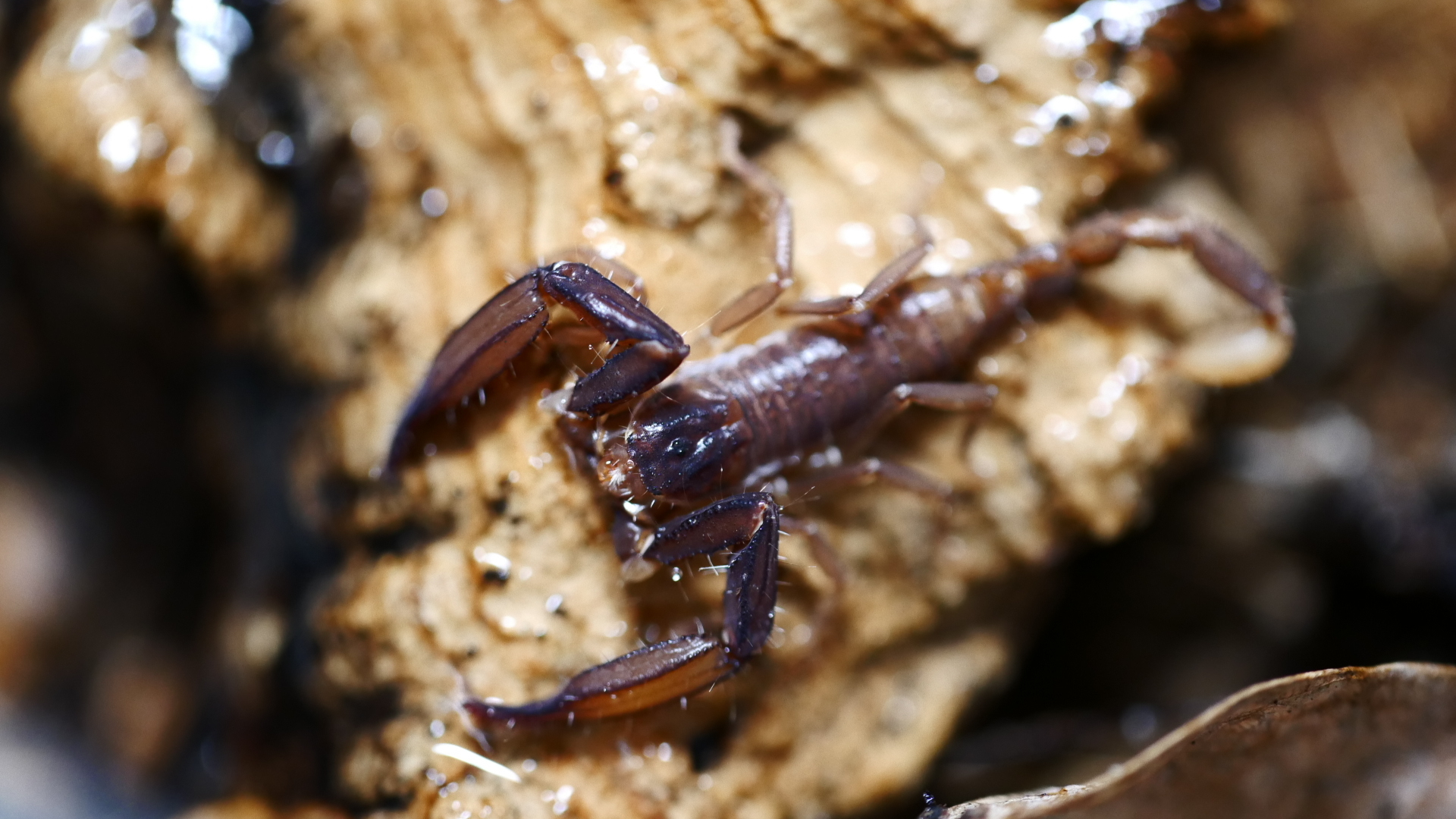 Skorpione haben kräftige Klauen und einen Giftstachel am Schwanzende.